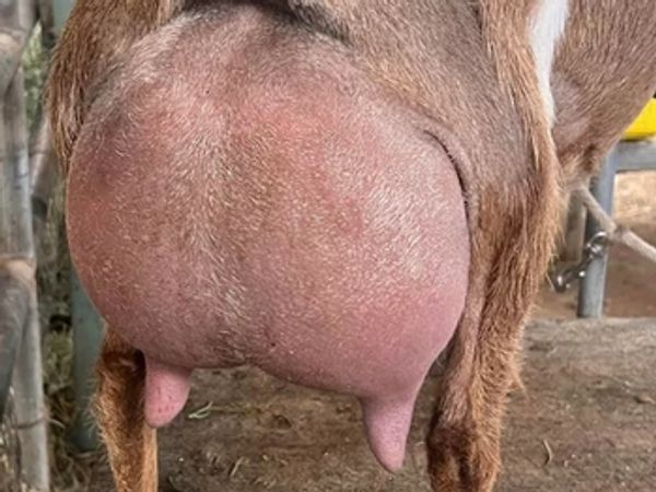 Ilene raises some gorgeous goats with exceptional mammary systems, so we were beyond excited to bring this girl home this year! Secret is still a junior doe and going through her awkward growing phase. We are excited to get her into the show ring later this year and freshen her next year.